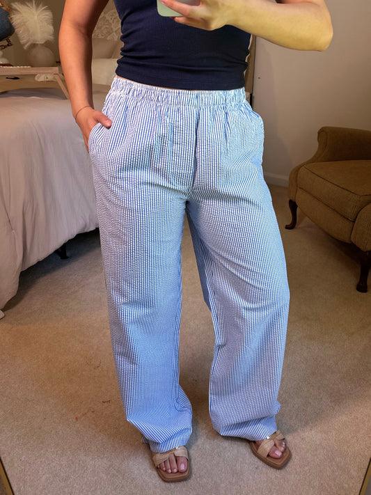 Blue Striped Seersucker Pants