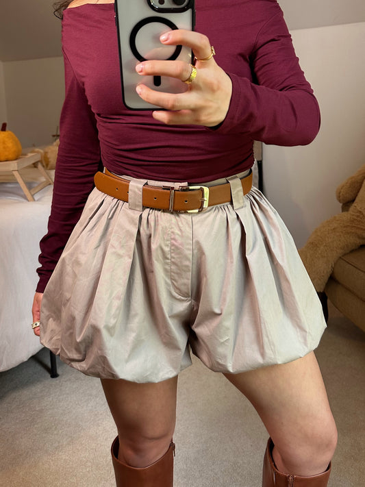 Mocha Bubble Hem Shorts