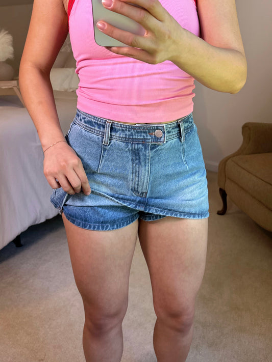 Denim Mid-Rise Mini Skort
