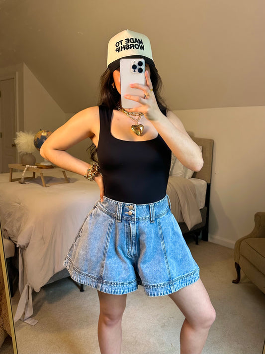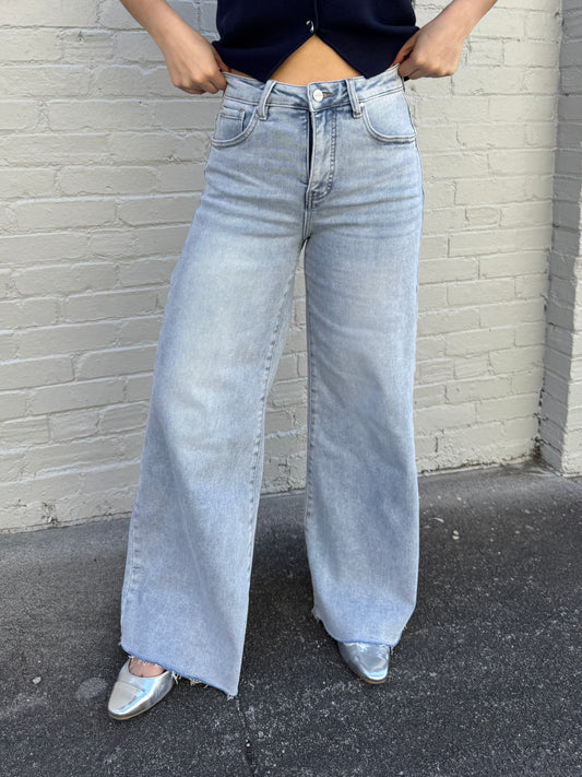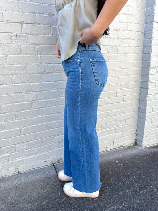 Sold outDark Denim Wide Leg Cuffed Jeans