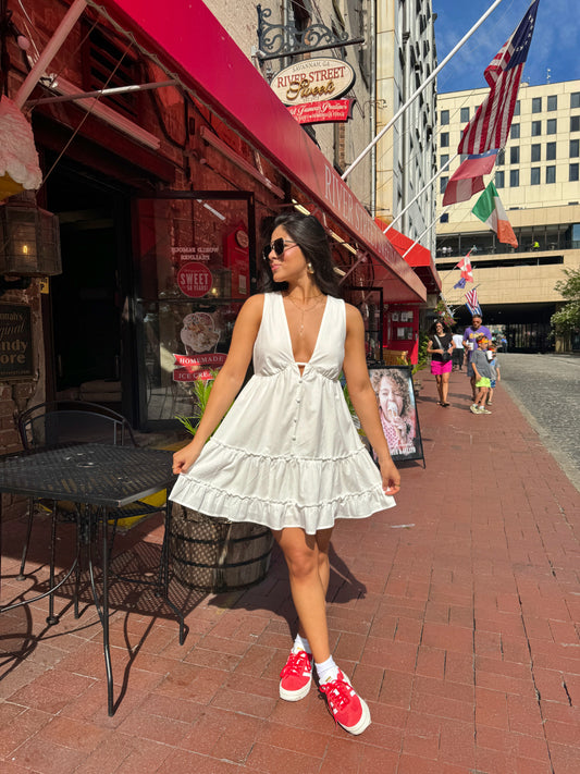 Sold outV-Neck White Short Dress