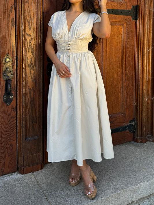 Sold outBeige Belted Buckle Dress