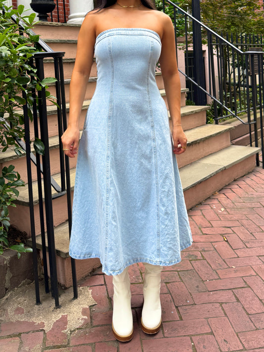 Sold outDenim Fit & Flare Tube Dress