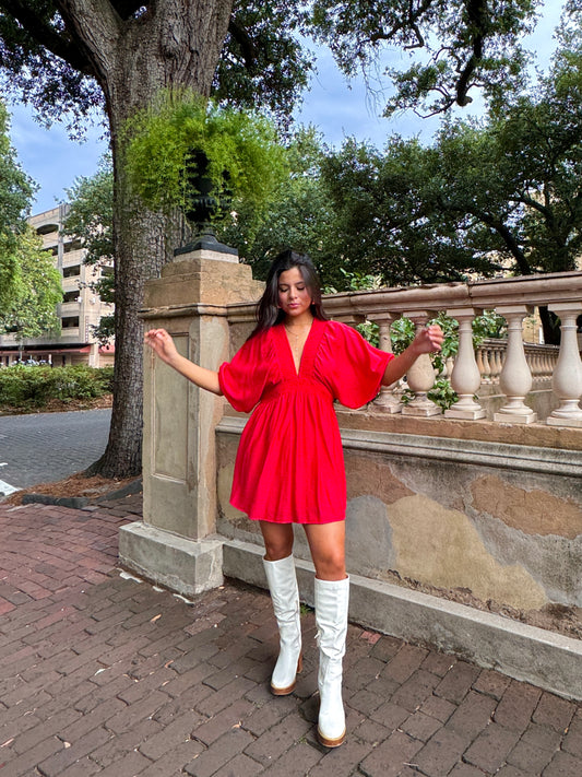 Sold outRed Puff Sleeve Flowy Mini Dress