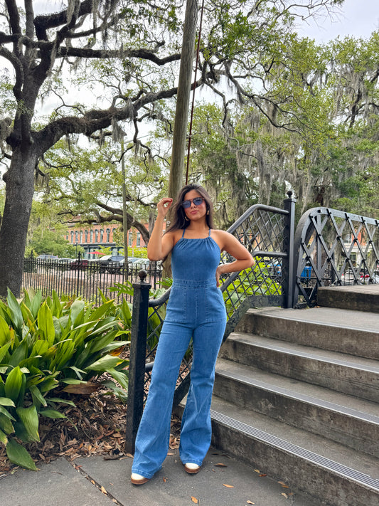 Sold outShowstopper Open Back Denim Jumpsuit
