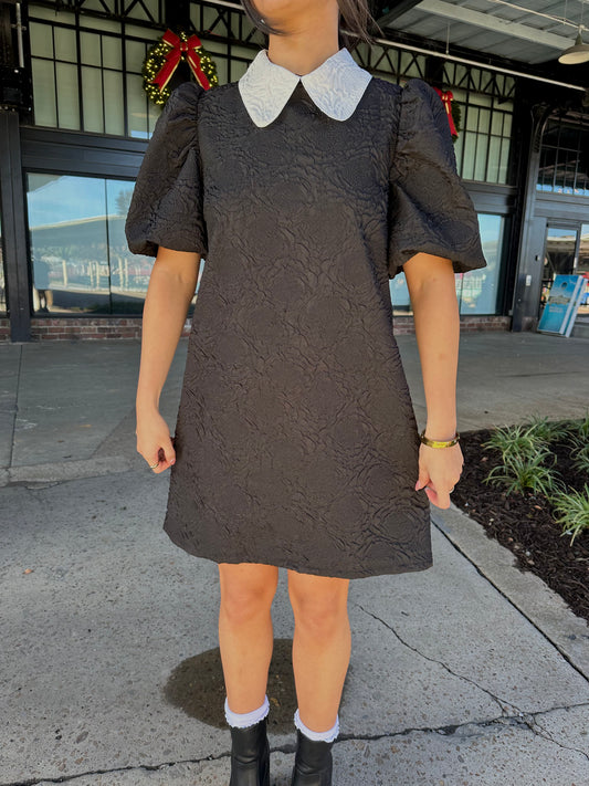 Sold outJacquard Collared Puff Sleeve Dress