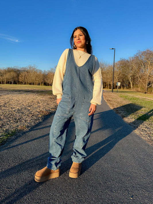 Free Girl Denim Jumpsuit (PLUS SIZE - 3XL LEFT)