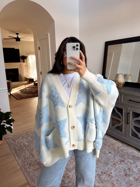 Baby Blue Star Oversized Cardigan