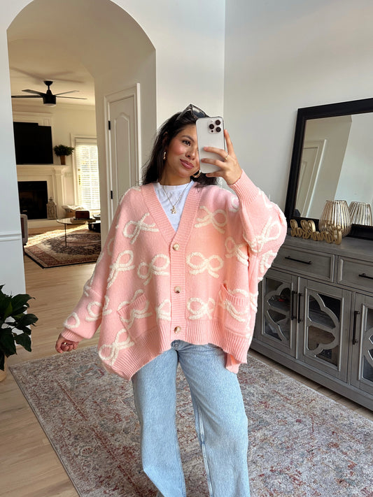 Sold outBaby Pink Bow Oversized Cardigan