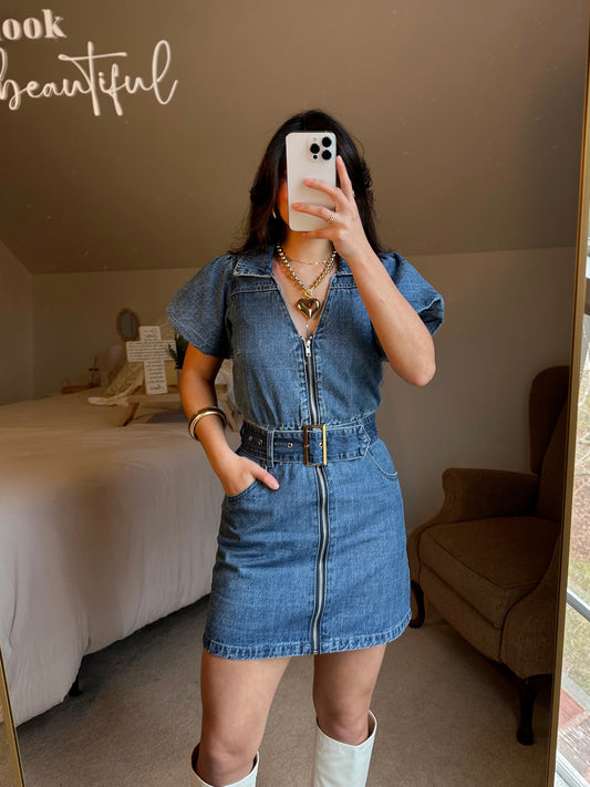 Sold outDenim Belted Zip-Up Dress