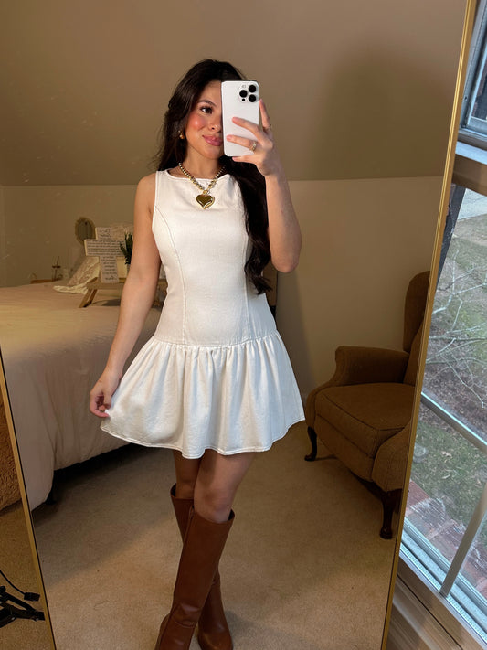 Sold outWhite Denim Drop-Waist Dress