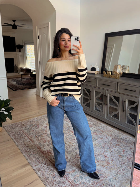 Sold outStriped Off-Shoulder Sweater