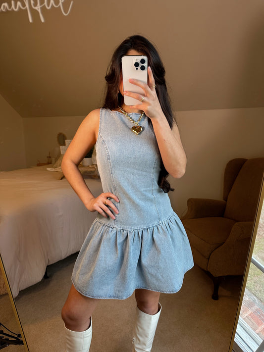 Light Denim Drop-Waist Dress