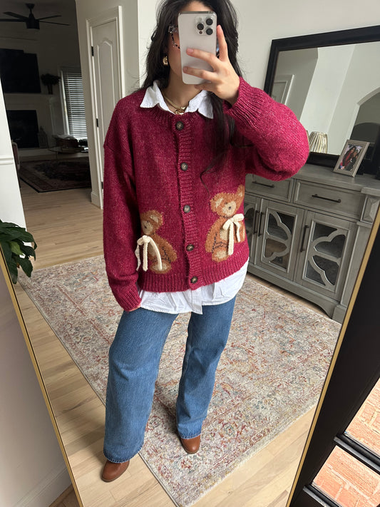 Sold outBurgundy Teddy Cardigan