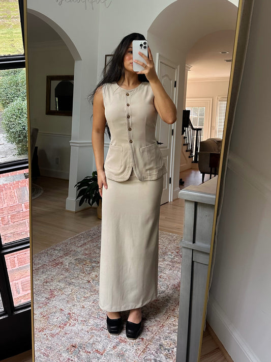 Sold outKhaki Vest & Skirt Set