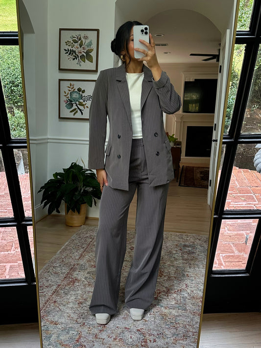 Sold outGrey Pinstripe Blazer & Trousers Set