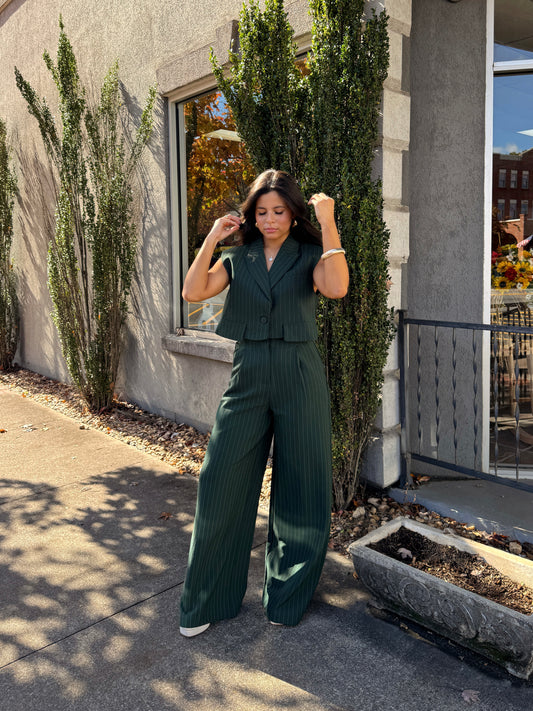 Sold outDark Green Pinstripe Suit Set