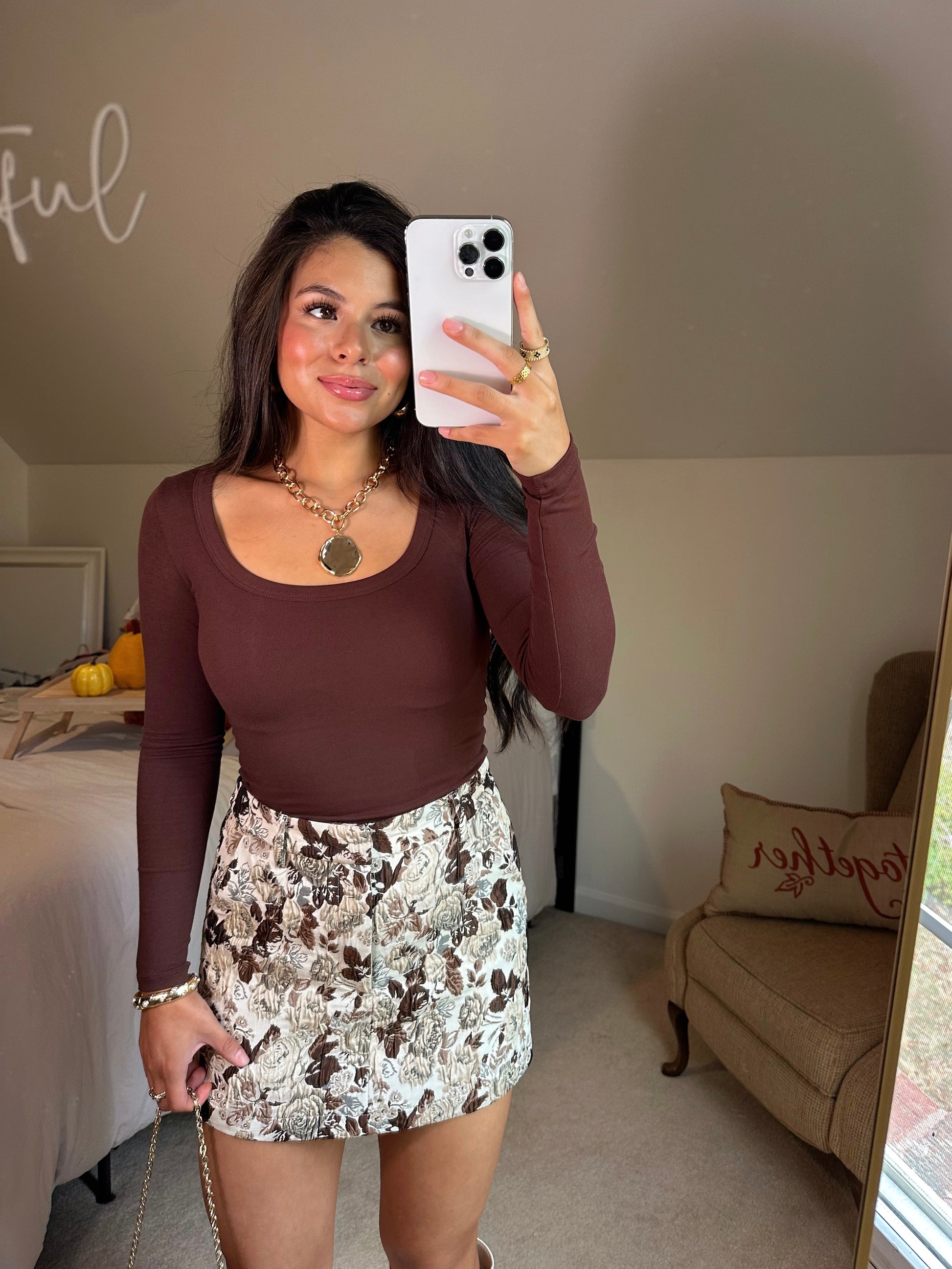 Dark Brown Long Sleeve Top