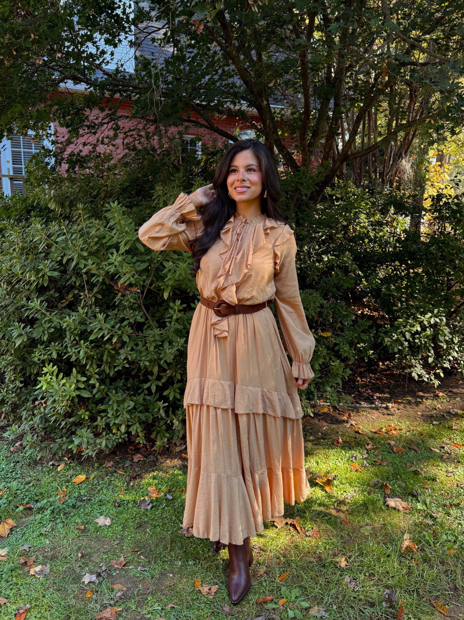 -model wearing size small. true to size. adjustable belt included. slight stretch at bust. roomy and flowy.