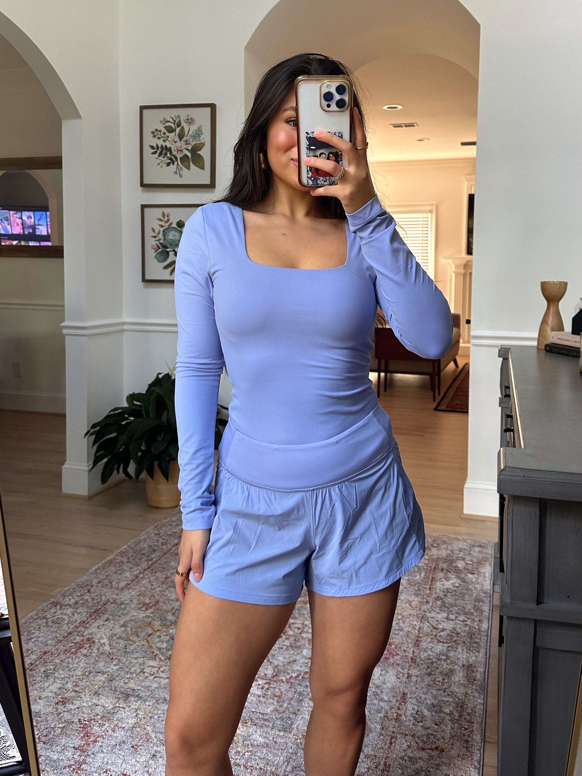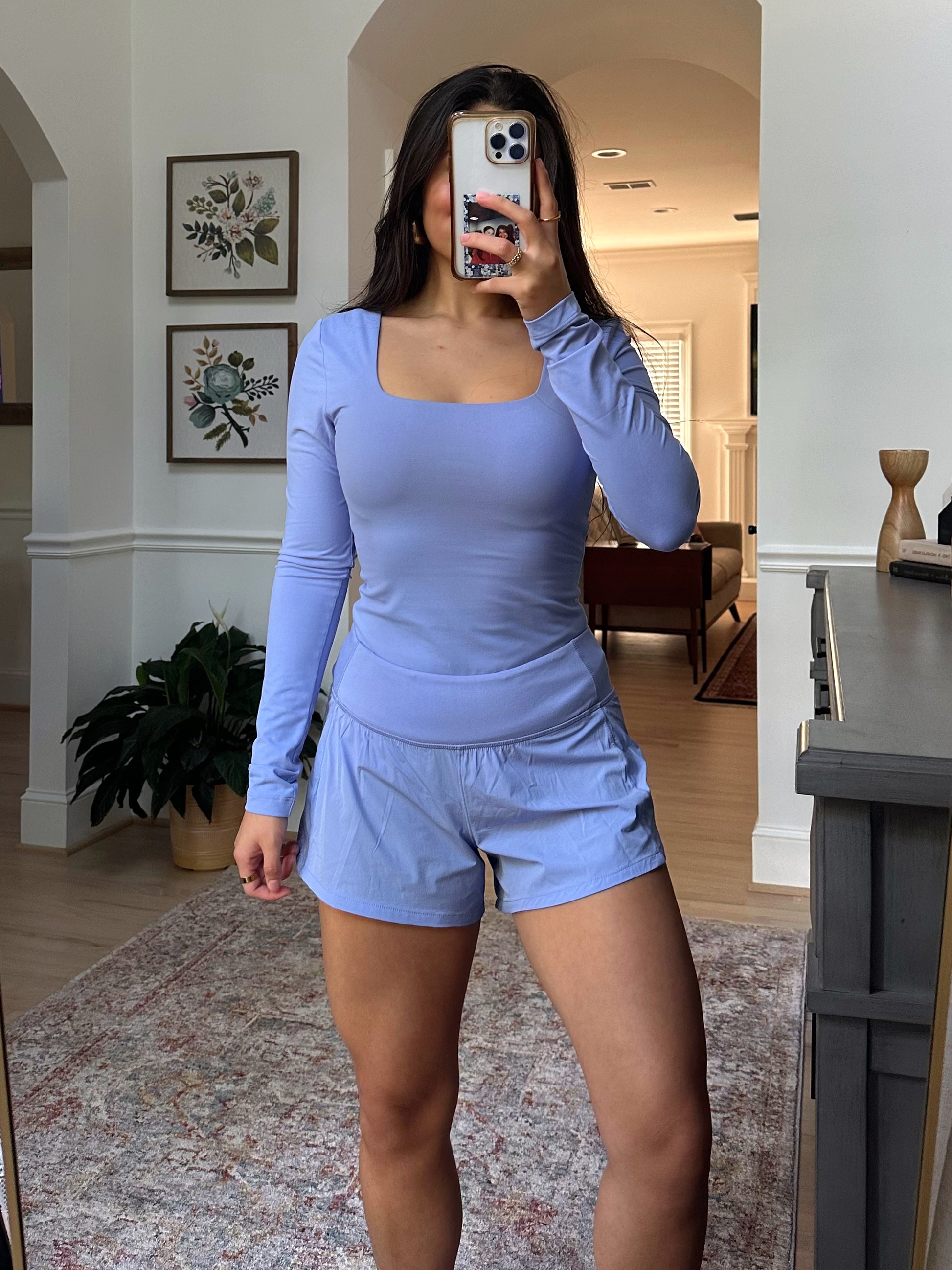 -buttery soft, double layered, thick, stretchy & compressive, square neck & back, long sleeve, full-length top.